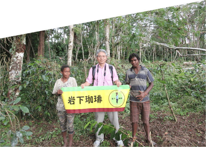 岩下珈琲は、インドネシアの農園に出向き、無農薬の生豆を買い付けています。インドネシアのコーヒー農園は小規模農園が多く、山奥の森林地帯で栽培されています。数メートルの大きな木々が、コーヒーの木に木陰をつくり、枯葉や木の実が腐葉土となり、有機栽培の環境を自然に作っています。
